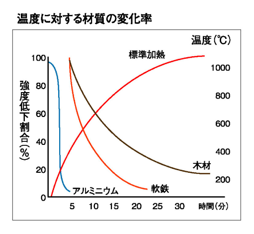 火は内部まで進行しないため、強度が低下しにくいという性質をもっています。700~950℃にまで達するといわれる現実の火災においても、実大火災実験の結果などから、これは事実として確認されています。